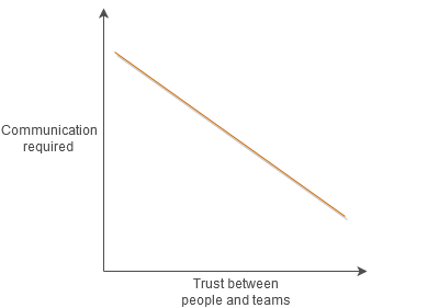 This concept is often expressed as the trust-communication trade off. It goes like this: The more that team members trust each other the less communication is required to achieve something collectively. Ben Horowitz, in his book “The Hard Thing About Hard Things”, writes: “If I trust you completely, then I require no explanation or communication of your actions whatsoever, because I know that whatever you are doing is in my best interests.”